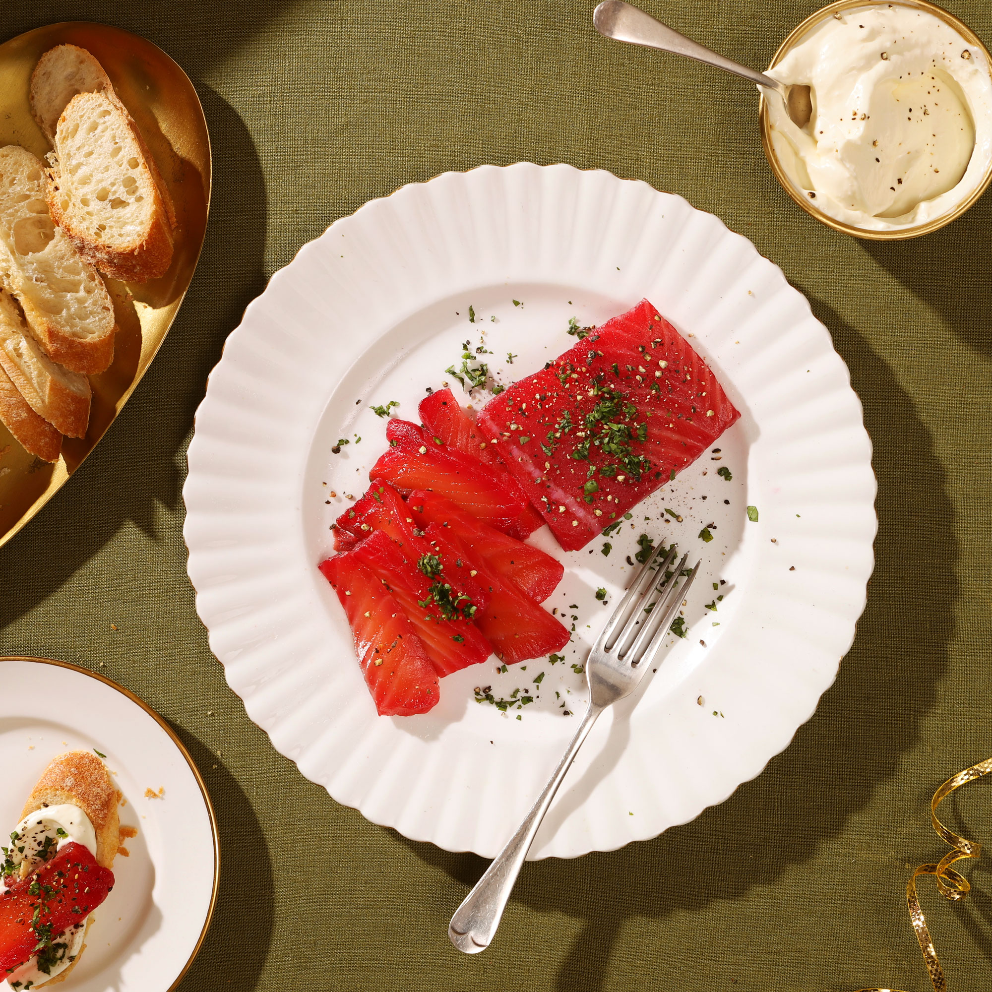 With a velvety horseradish cream and sourdough demi baguette.