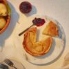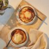 6. Gently put the soufflés onto serving plates (don’t forget to drizzle over any excess cheese and sauce from the baking tray) and serve alongside the warm baguette and salted butter