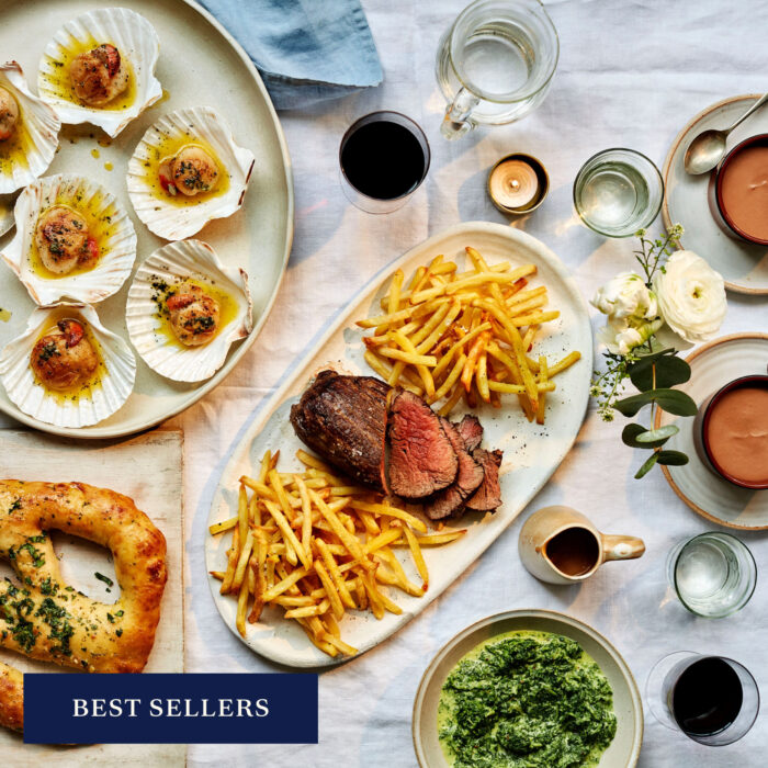 Choice of steak cut: 227g Ribeye Steak / 200g Fillet Steak /400g Chateaubriand – prepared in our own Côte butchery. (All steaks are suitable for freezing)