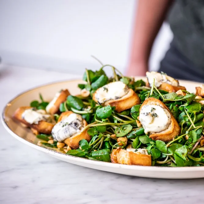 Goat’s Cheese and Hazelnut Salad with Blackcurrant and Mustard Vinaigrette