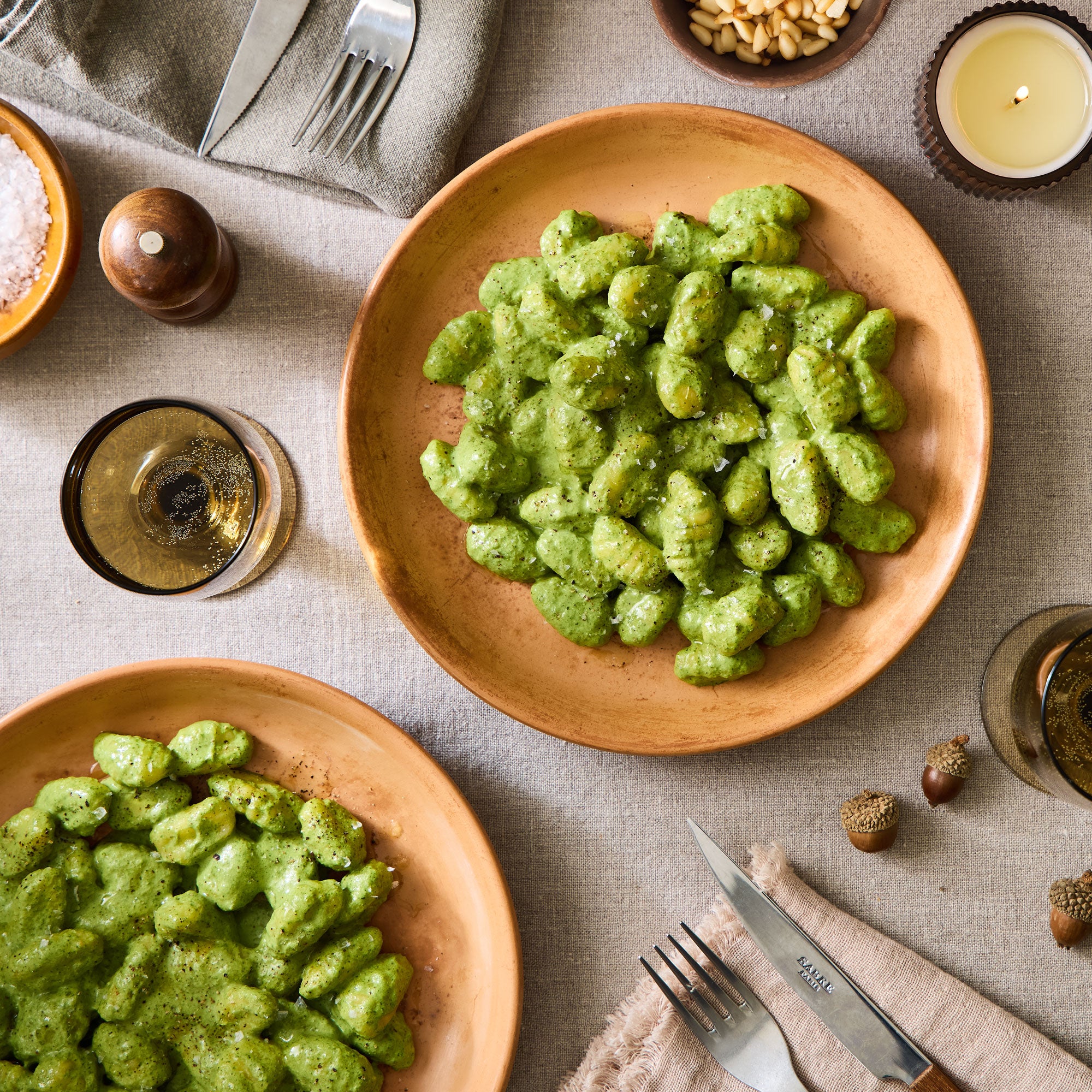 Little clouds of gnocchi, tossed with pistou, pine nuts, and basil. South-coast sunshine in a bowl (chicken optional, appetite essential).